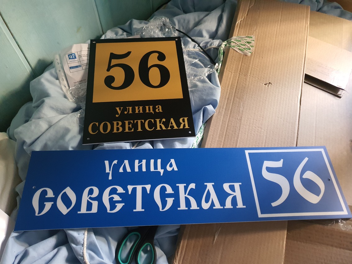 Хотела бы поблагодарить вашу компанию и ваших мастеров за безупречную работу адресных табличек! Заказывали светоотражающие себе (фото прилагаются) и родителям (фото, к сожалению нет). Таблички крутые! Очень аккуратные! Доставка быстрая! Спасибо большое!