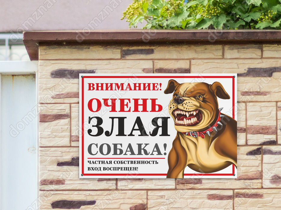 Табличка «Внимание, очень злая собака» изготавливается на основе из пластика ПВХ или оцинкованного металла.
