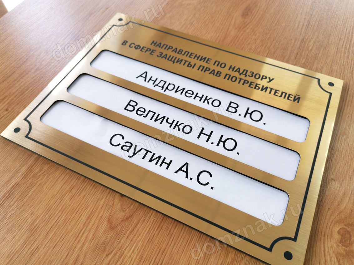 • Гравированная табличка выглядит очень солидно и презентабельно. Внутри помещений и на улице, табличка прослужит вам долгие годы.