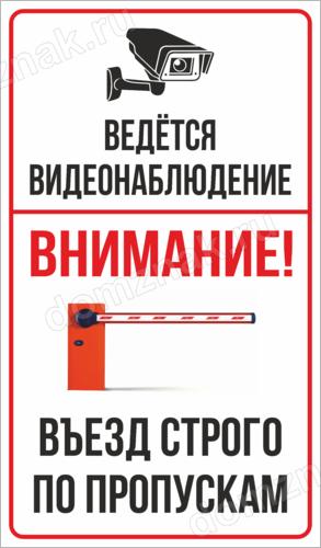 Табличка «Ведется видеонаблюдение, въезд только по пропускам»