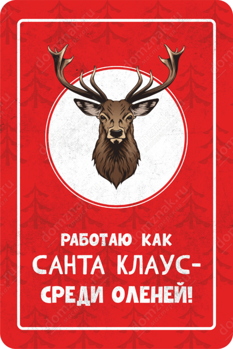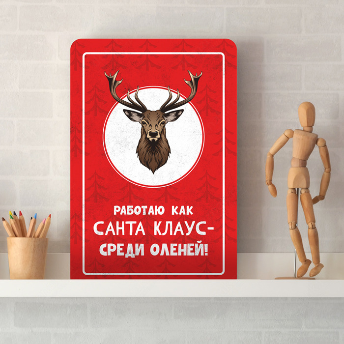 Табличка «Работаю как Санта Клаус – среди оленей»