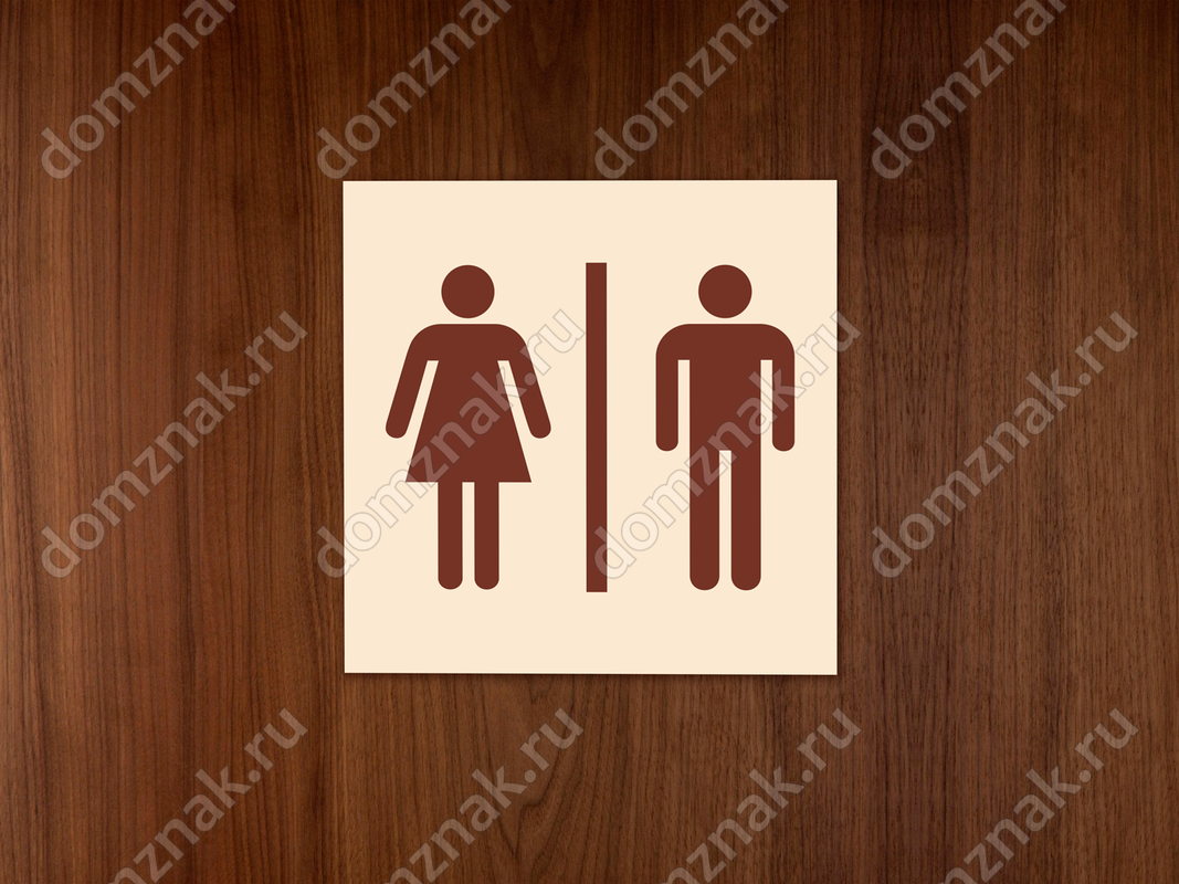 Табличка на дверь туалета изготавливается из пластика ПВХ белого цвета (толщина 3 мм). Изображение наносится плёнкой Oracal 641, либо методом полноцветной печати.