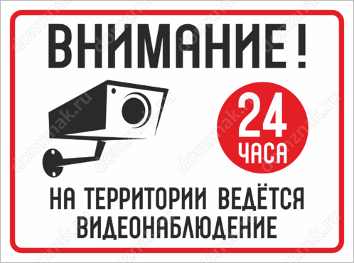 Табличка «Внимание! Ведётся видеонаблюдение 24 часа»