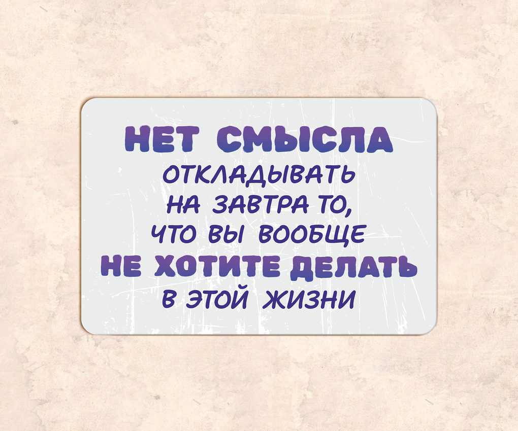 Табличка «Нет смысла откладывать на завтра, то что вы вообще не хотите делать в этой жизни»