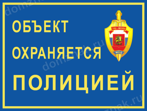 Табличка «Объект охраняется полицией» с гербом ГУВД г.Москвы