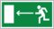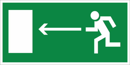 Эвакуационный указатель «Направление к эвакуационному выходу налево» (код E04), устанавливается на стенах помещений для указания направления движения к эвакуационному выходу.